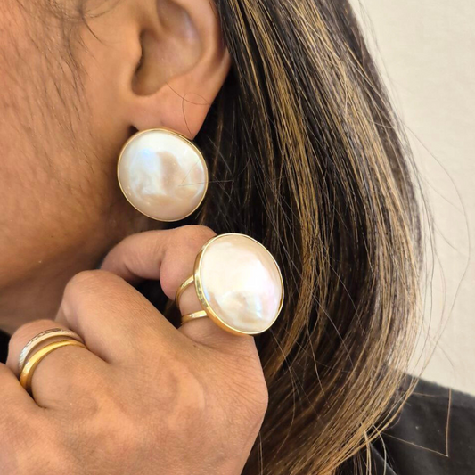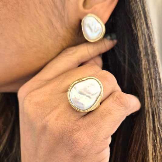 Anello in Argento 925 dorato satinato con Perla Scaramazza