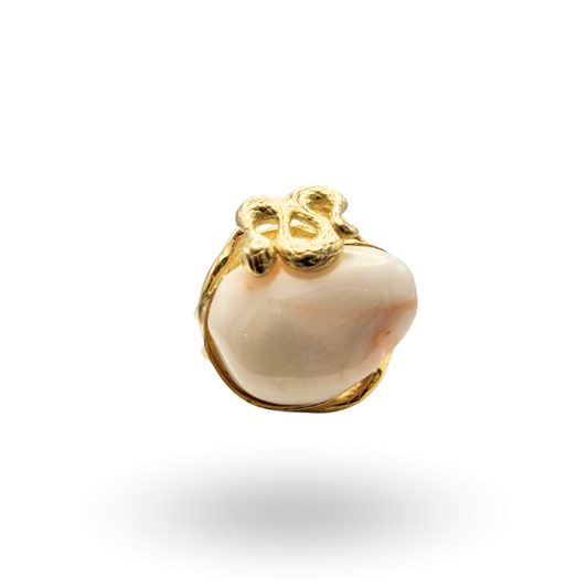 Anello in Argento 925 dorato con serpente e sasso di Corallo rosa naturale
