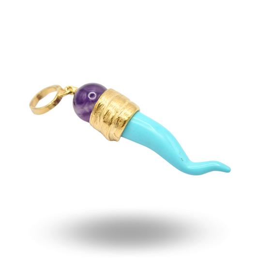 Ciondolo in Argento 925 dorato con Corno in Pasta di Turchese e Ametista