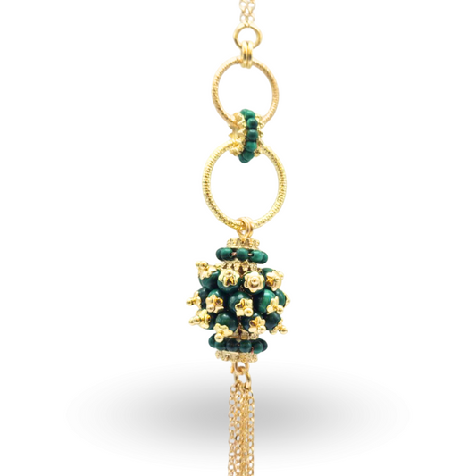 Collana in Argento 925 dorato con ciuffo in Malachite e frangia