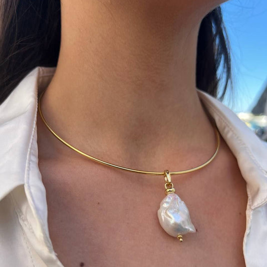 Collana a girocollo rigido in Argento 925 dorato con pendente in Perla Scaramazza