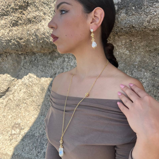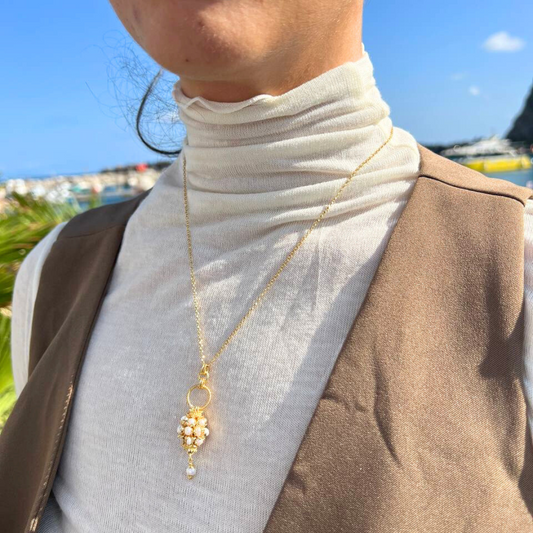 Collana in Argento 925 dorato con due mezze mine in Perle e Perla Scaramazza