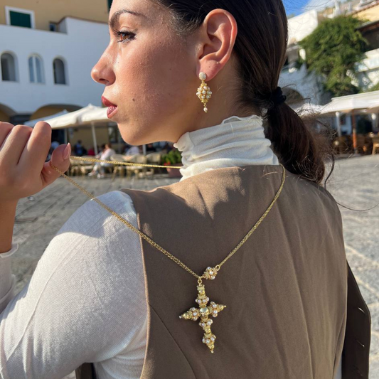Collana in Argento 925 dorato con Croce modello Elegant con mezze mine in Perle