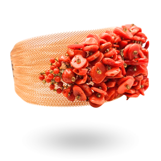 Bracciale a grappolo con maglia a rete in Acciaio rosato con Corallo rosso Mediterraneo
