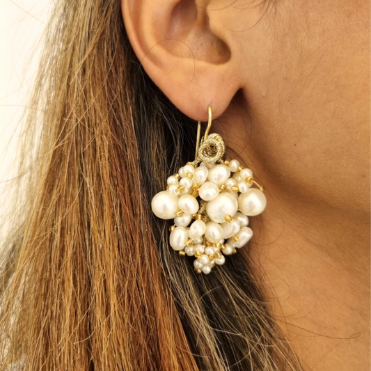 Orecchini a grappolo in Argento 925 dorato con Perle di varie dimensioni