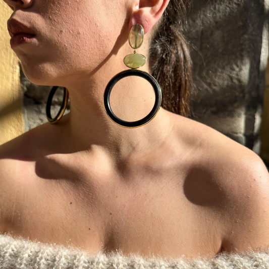 Orecchini in Argento 925 dorato con cerchi in Ebano e Berillo verde