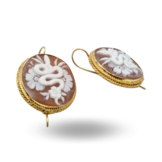 Orecchini in Argento 925 dorato con Cammeo Serpente su Sardonica