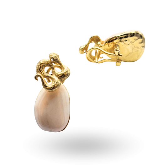 Orecchini in Argento 925 dorato con serpente e sasso di Corallo rosa naturale