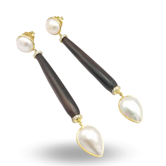 Orecchini in Argento 925 dorato con Ebano a goccia e Perle
