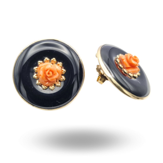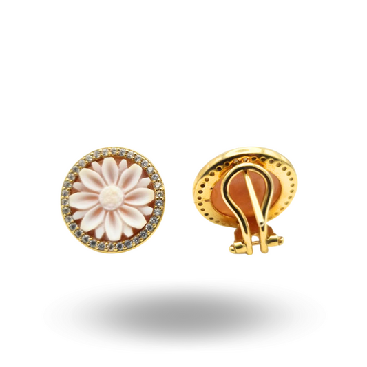 Orecchini in Argento 925 dorato con piastra bombata in Onice e rosa in Corallo di Sciacca