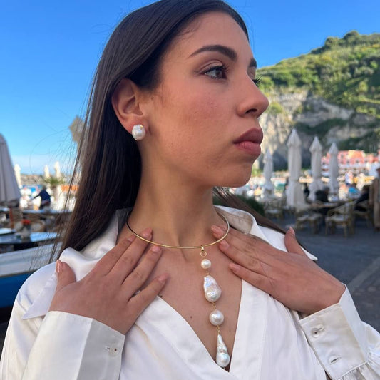 Collana a girocollo rigido in Argento 925 dorato con pendente in Perle Scaramazze e Barocche