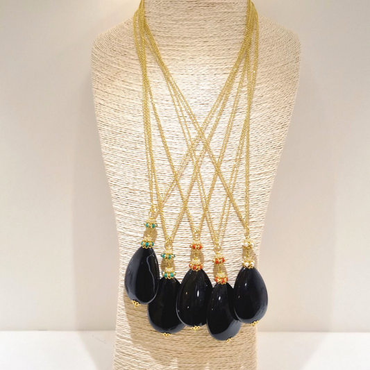 Collana in Argento 925 dorato con goccia in Onice, mina e mezza mina con coroncine in Corallo rosso Mediterraneo