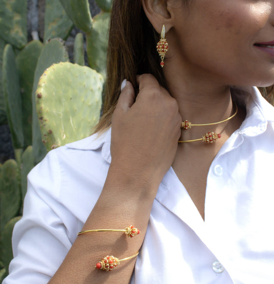 Orecchini in Argento 925 dorato con mine in Corallo Rosso Mediterraneo