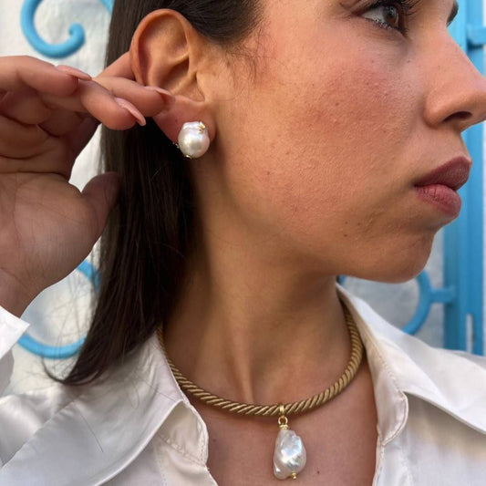 Collana con cordone a girocollo rigido in Argento 925 dorato con pendente in Perla Scaramazza