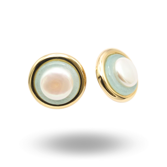 Orecchini in Argento 925 dorato con Perla naturale e cornice in Acquamarina