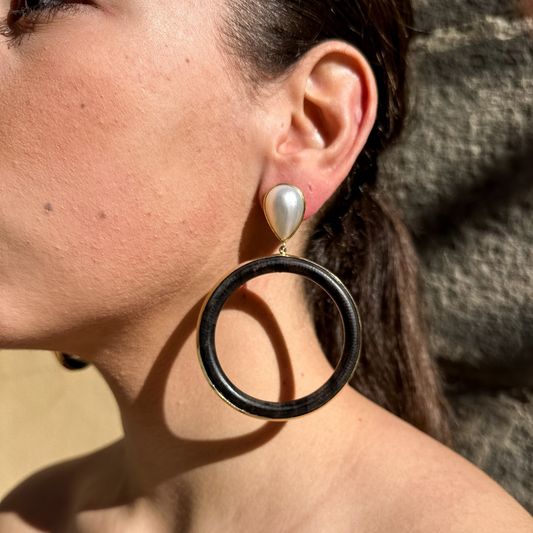 Orecchini in Argento 925 dorato con cerchi in Ebano e Perle