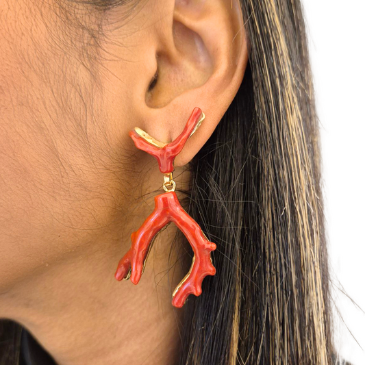 Orecchini in Argento 925 dorato con due rami in Corallo rosso Mediterraneo