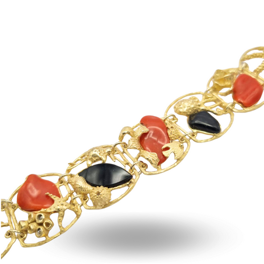 Bracciale in Argento 925 dorato con Onice e Corallo - Tema marino
