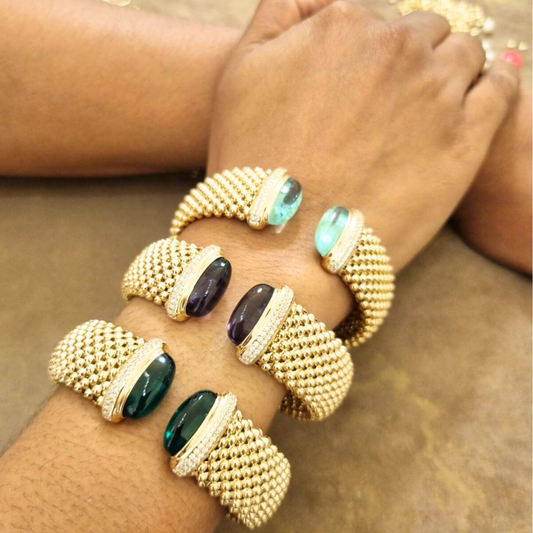 Bracciale in Argento 925 dorato in maglia tessito con Quarzo verde smeraldo