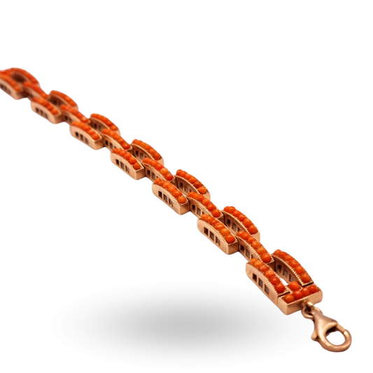 Bracciale in Argento 925 rosato con Corallo di Sciacca. Maglia Cartier