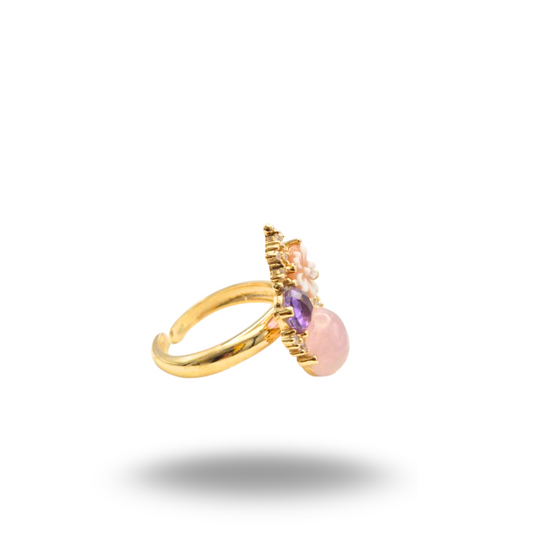Anello in Argento 925 dorato con Cammeo, Quarzo rosa e Ametista, Modello Vanity