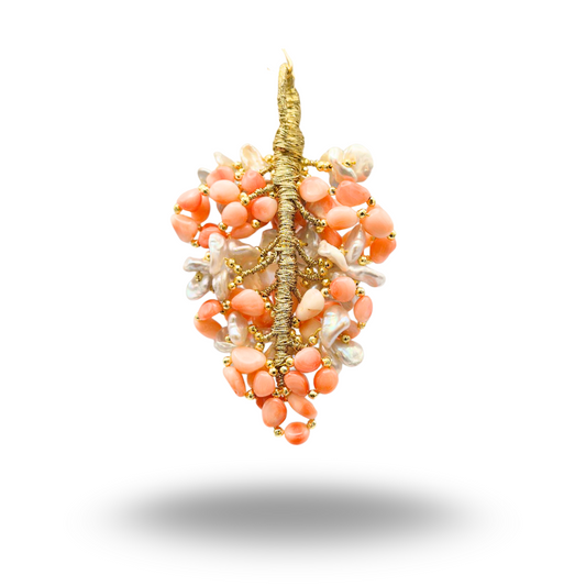 Ciondolo a grappolo con Corallo rosa e Perle. Misura grande