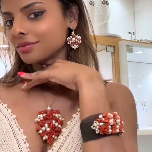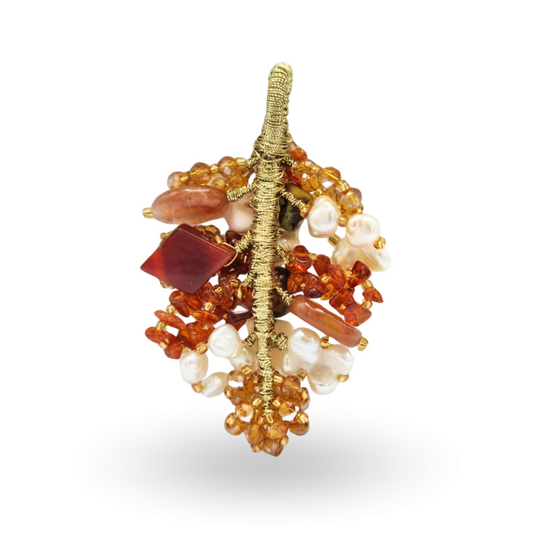 Orecchini a grappolo in Argento 925 dorato con Corallo, Perle, Quarzi e Pietre naturali
