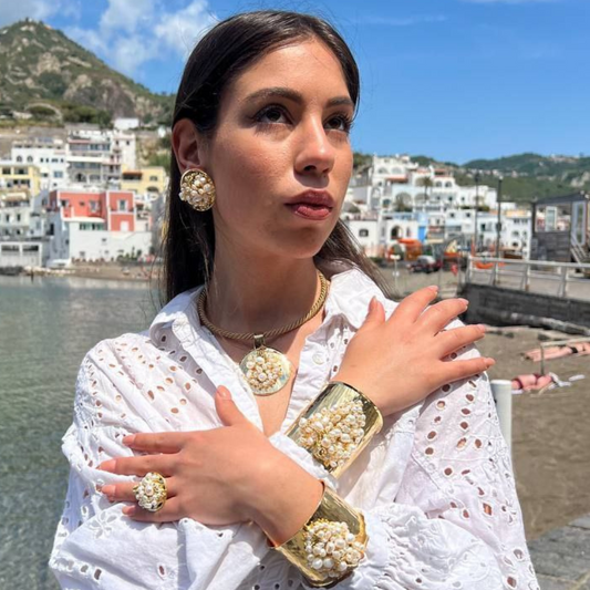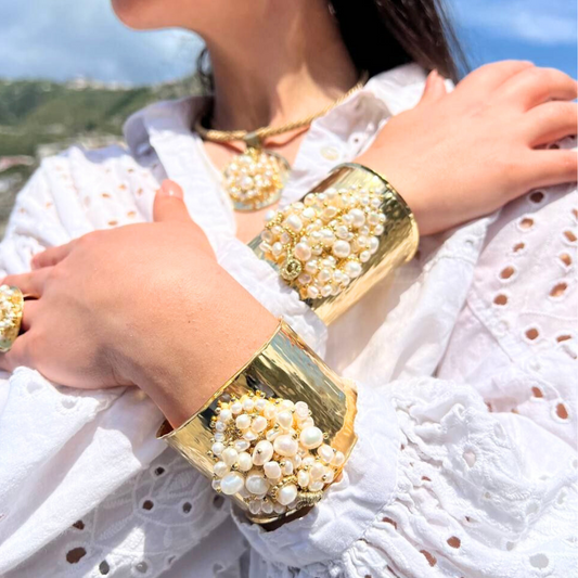 Bracciale a grappolo in Bronzo dorato con Perle. Misura grande