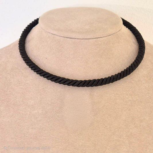 Cordone girocollo semirigido con chiusura in Argento dorato. Disponibile Beige e Nero