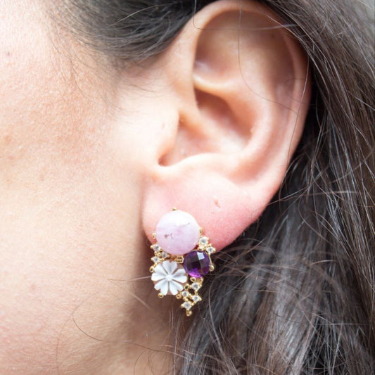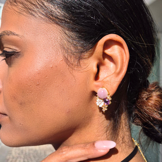 Orecchini in Argento 925 dorato con Cammeo, Quarzo rosa e Ametista, Modello Vanity