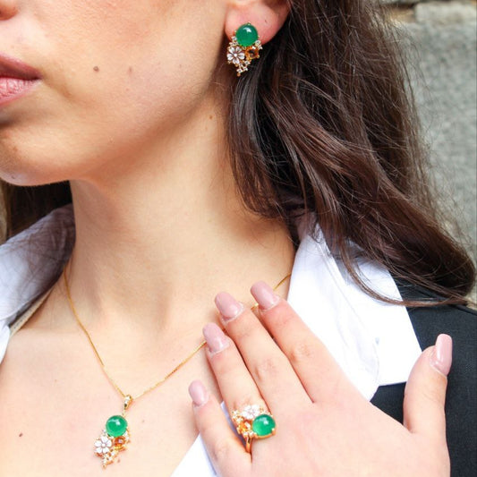 Orecchini in Argento 925 dorato con Cammeo a fiore, Giada e Topazio giallo, Modello Vanity