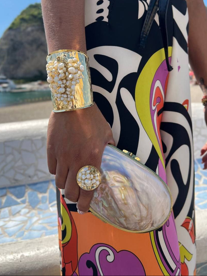 Anello a grappolo in Argento 925 dorato con con Perle. Misura regolabile