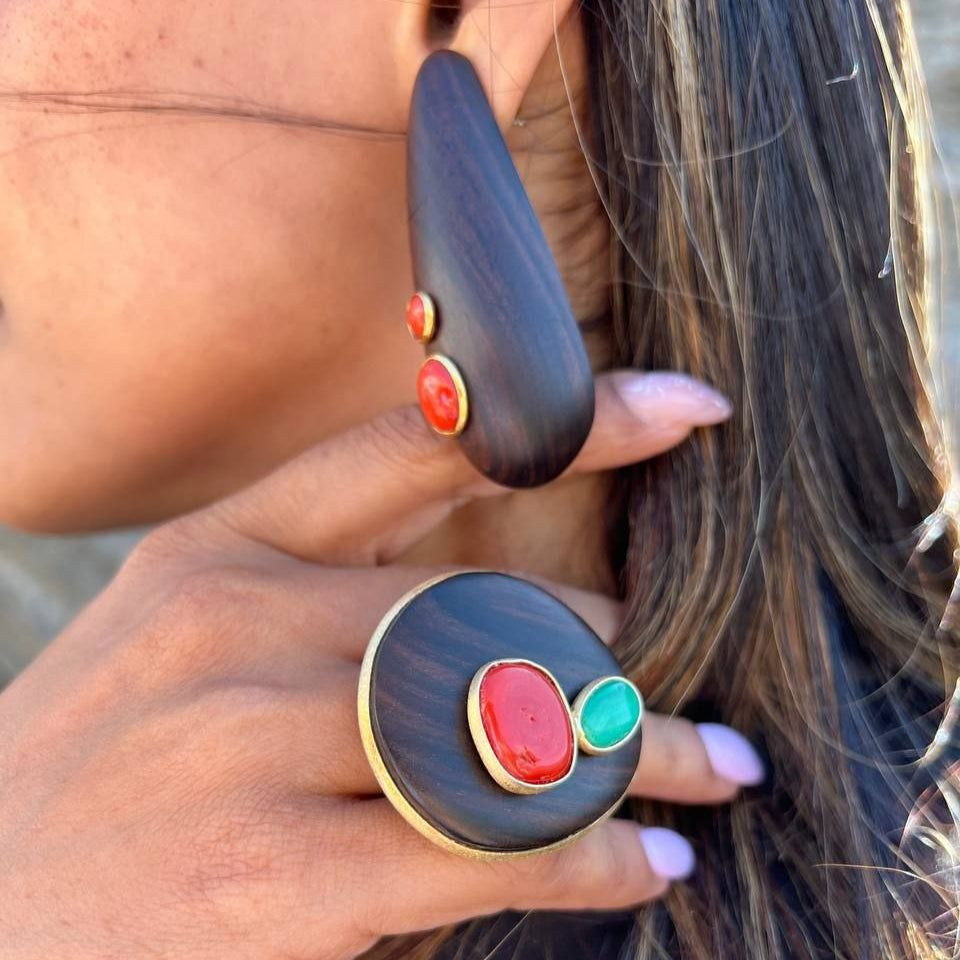 Anello in Argento 925 dorato con Cammeo, Amazzonite e Corallo, Modello Vanity