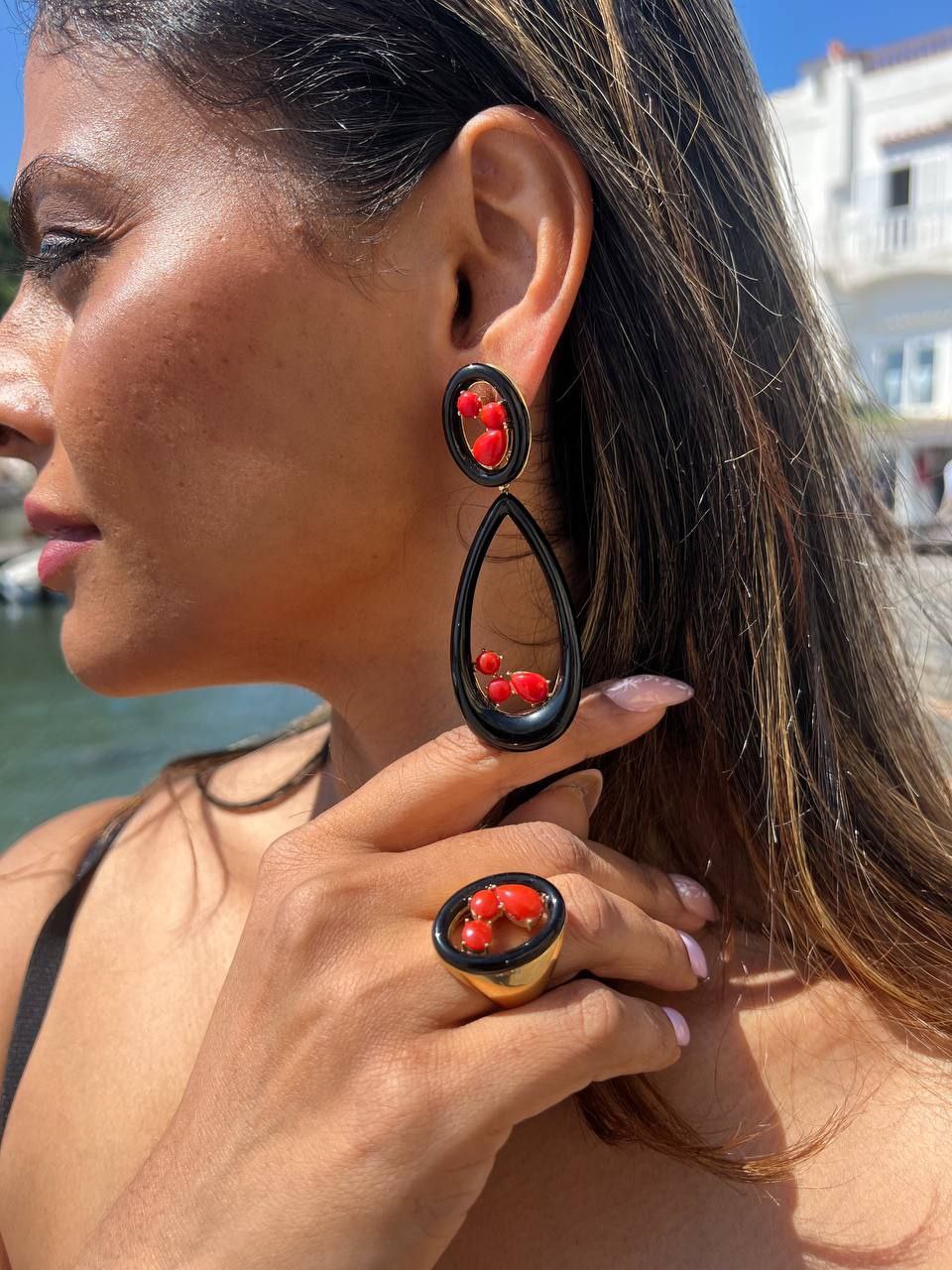 Anello in Argento 925 dorato con Cammeo, Onice e Corallo, Modello Vanity
