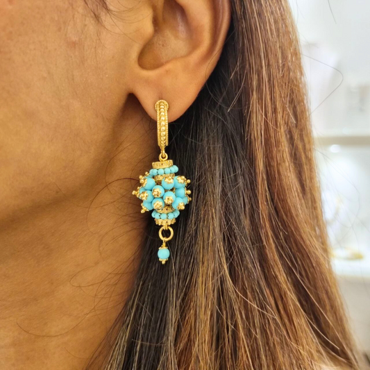 Orecchini in Argento 925 dorato con spola in Pasta di Turchese e montatura a Fiore