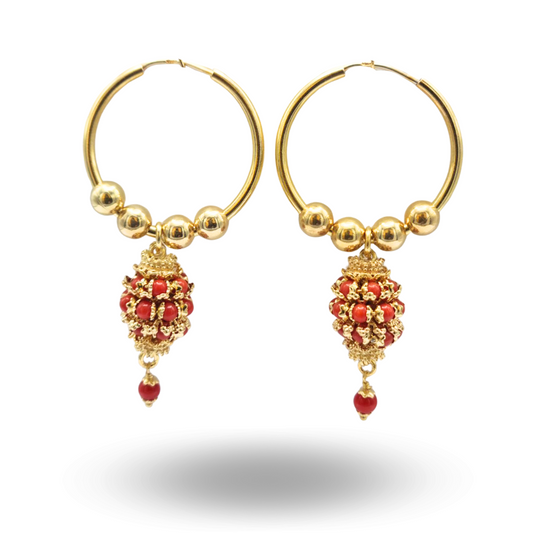 Orecchini in Argento 925 dorato con mine in Corallo Rosso Mediterraneo