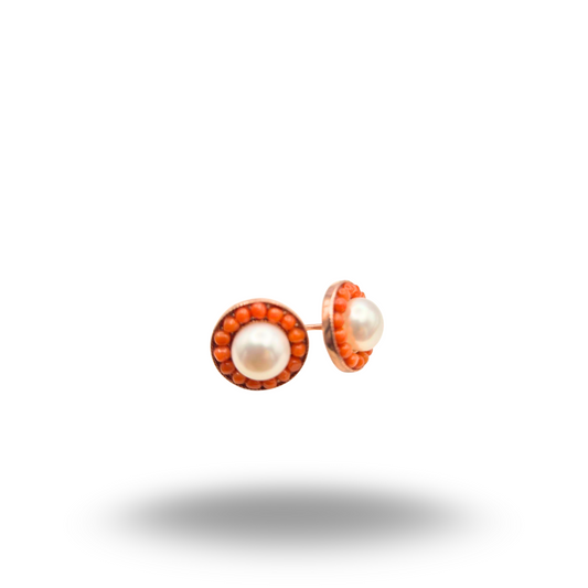 Orecchini in Argento 925 rosato con Corallo di Sciacca e Granata centrale