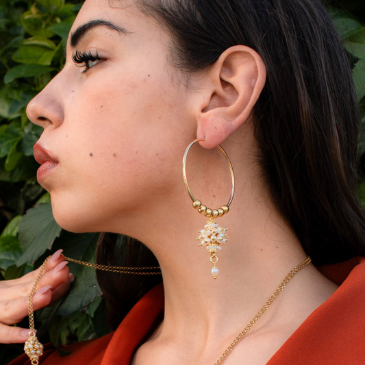 Boucles d'oreilles créoles en argent 925 plaqué or avec touffes de perles